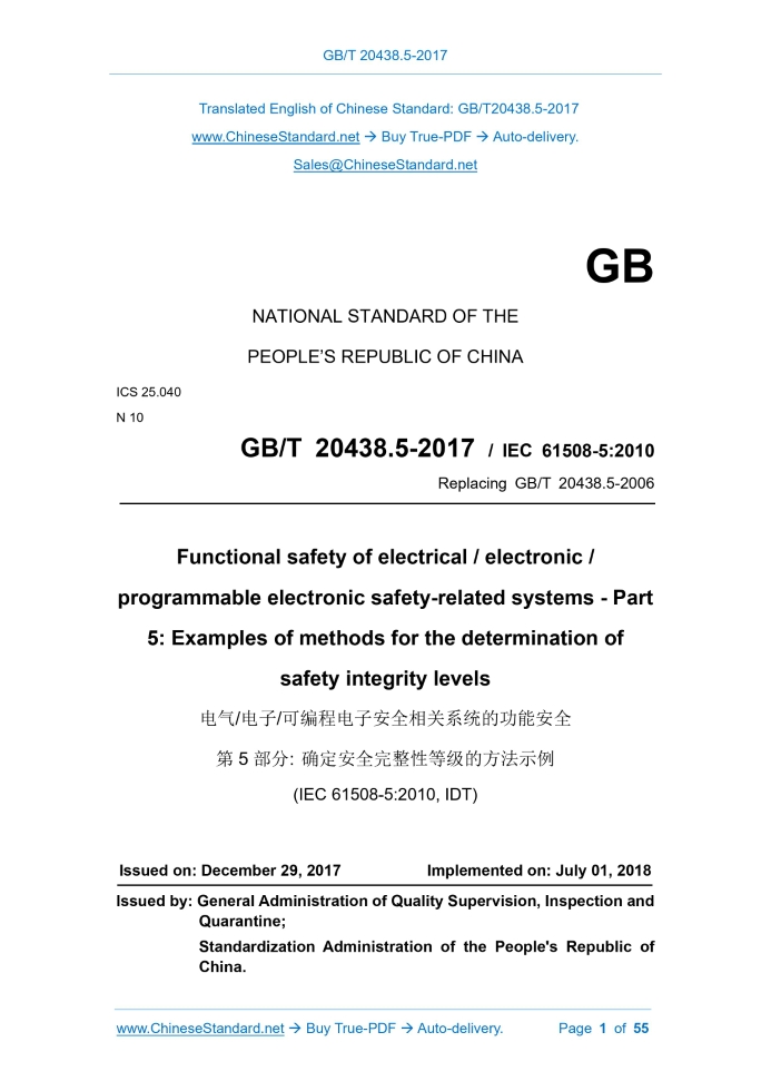 GB/T 20438.5-2017: Functional safety of electrical/electronic/programmable electronic safety-related systems -- Part 5: Examples of methods for the determination of safety integrity levels Delivery: 9 seconds. True-PDF full-copy in English & invoice will be downloaded + auto-delivered via email. See step-by-step procedure Status: Valid GB/T 20438.5: Historical versions