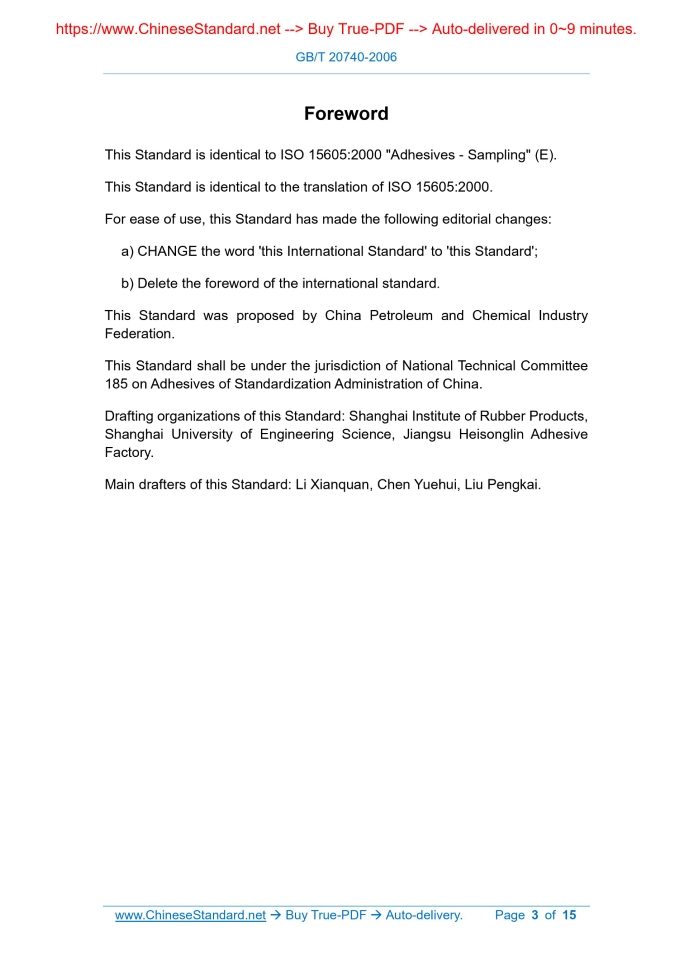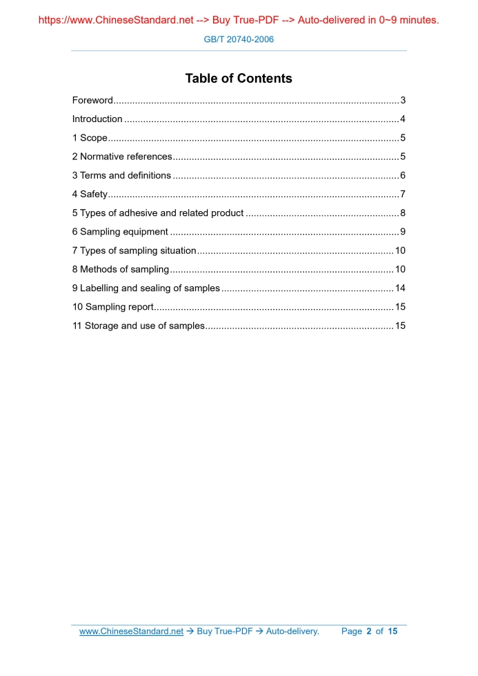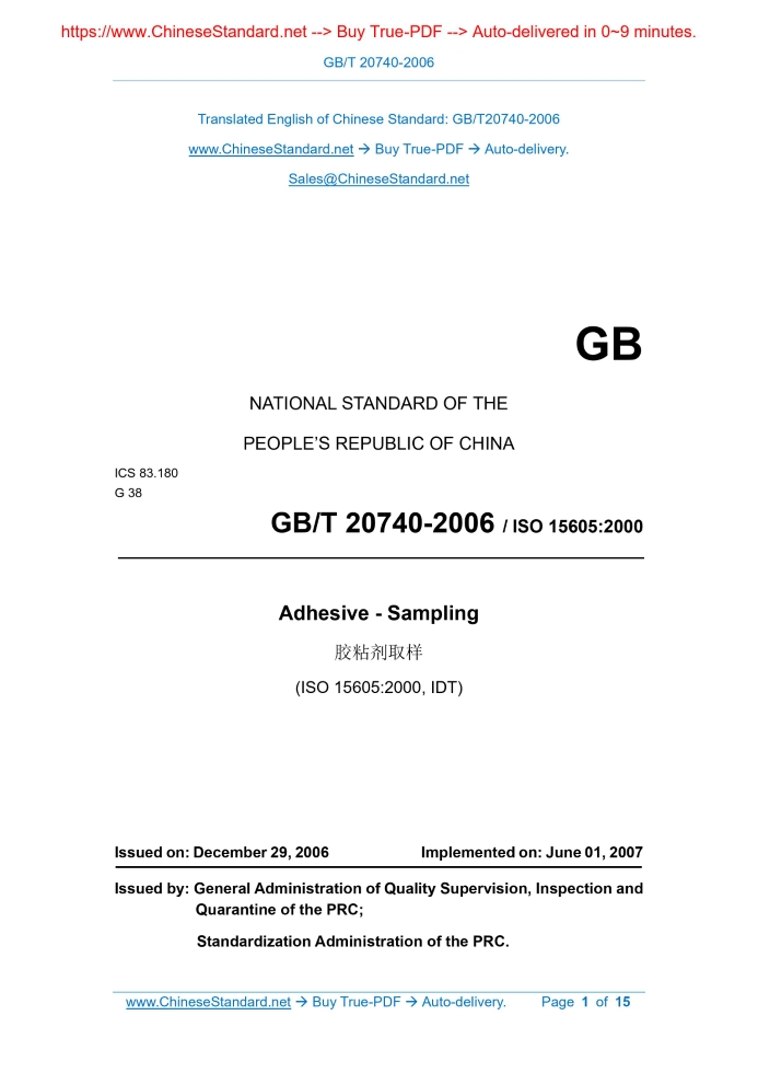 GB/T 20740-2006: Adhesive -- Sampling Delivery: 9 seconds. True-PDF full-copy in English & invoice will be downloaded + auto-delivered via email. See step-by-step procedure Status: Valid