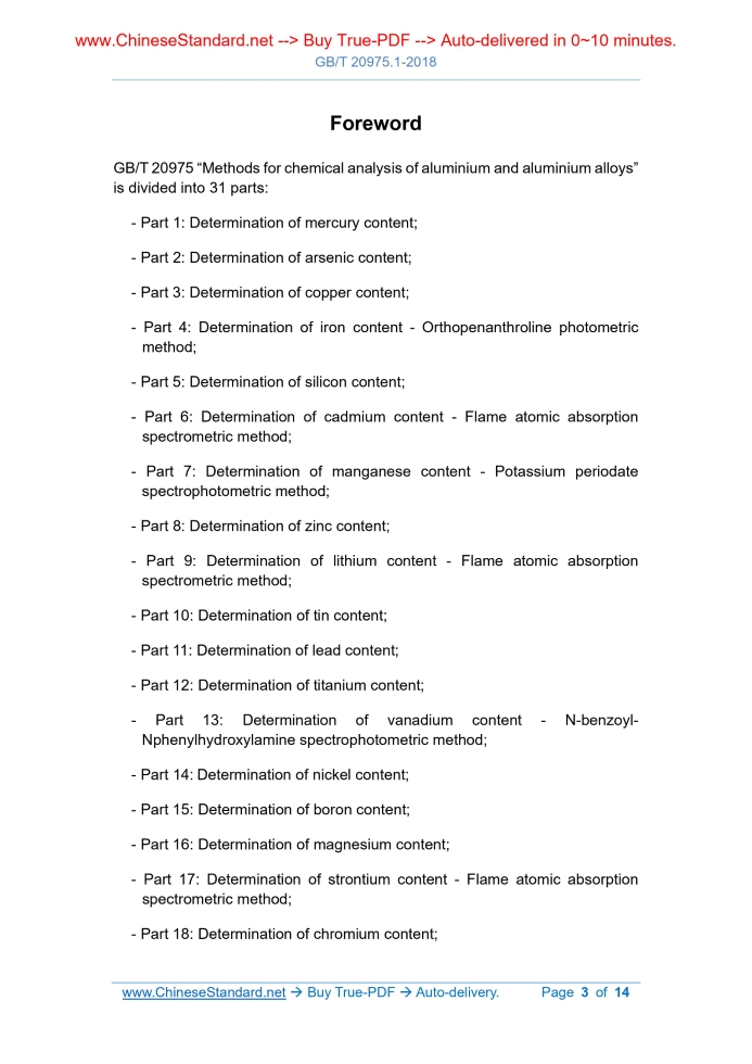 GB/T 20975.1-2018: Methods for chemical analysis of aluminium and aluminium alloys - Part 1: Determination of mercury content Delivery: 9 seconds. True-PDF full-copy in English & invoice will be downloaded + auto-delivered via email. See step-by-step procedure Status: Valid GB/T 20975.1: Historical versions