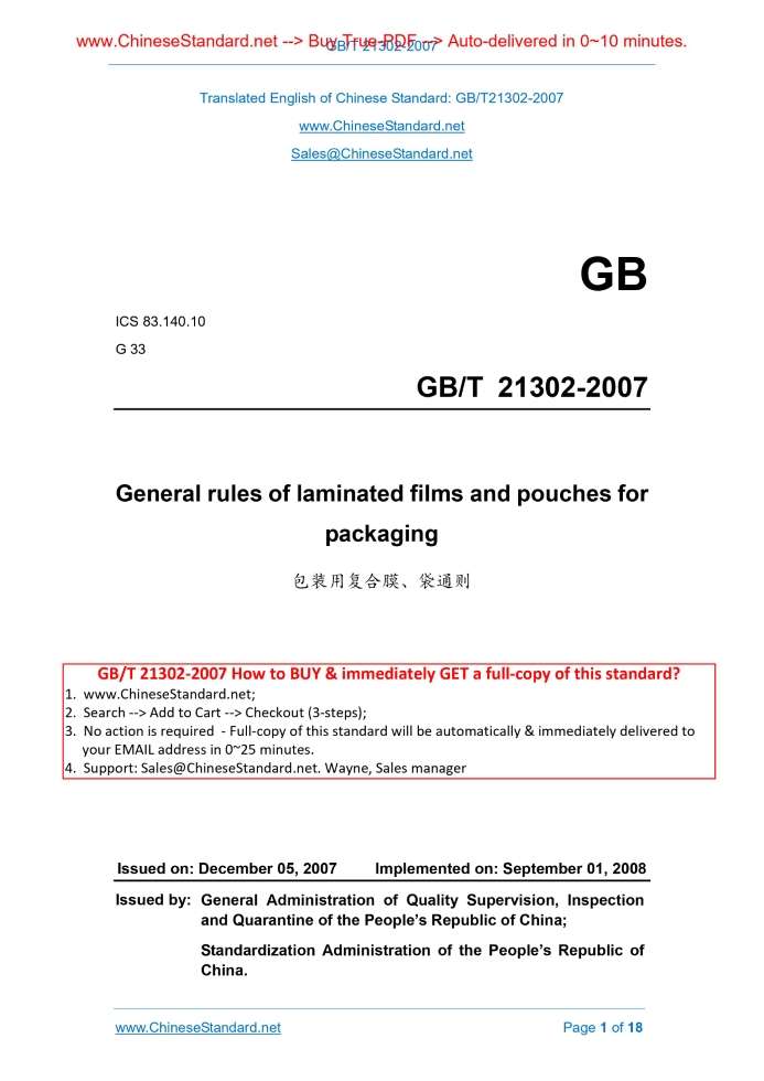 GB/T 21302-2007: General rules of laminated films and pouches for packaging Delivery: 9 seconds. True-PDF full-copy in English & invoice will be downloaded + auto-delivered via email. See step-by-step procedure Status: Valid