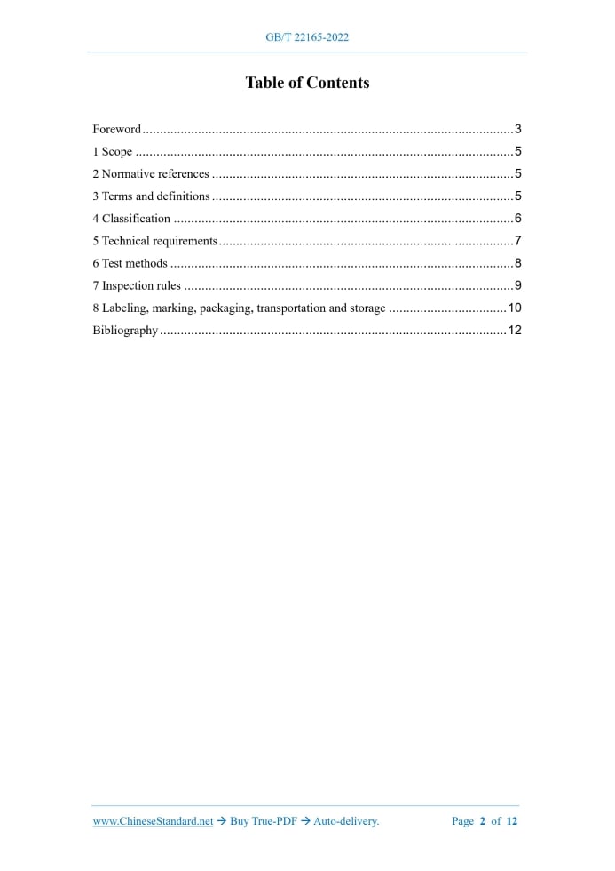 Foreword... 3 1 Scope... 5 2 Normative references... 5 3 Terms and definitions... 5 4 Classification... 6 5 Technical requirements... 7 6 Test methods... 8 7 Inspection rules... 9 8 Labeling, marking, packaging, transportation and storage... 10 Bibliography... 12