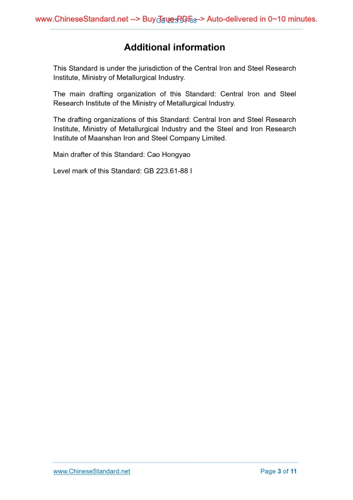 GB/T 223.61-1988: Methods for chemical analysis of iron, steel and alloy - The ammonium phosphomolybdate volumetric method for the determination of phosphorus content Delivery: 9 seconds. True-PDF full-copy in English & invoice will be downloaded + auto-delivered via email. See step-by-step procedure