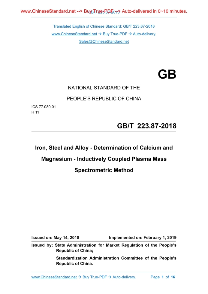 GB/T 223.87-2018: Iron, Steel and Alloy - Determination of Calcium and Magnesium - Inductively Coupled Plasma Mass Spectrometric Method Delivery: 9 seconds. True-PDF full-copy in English & invoice will be downloaded + auto-delivered via email. See step-by-step procedure Status: Valid