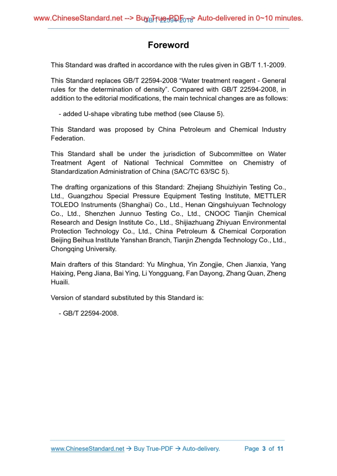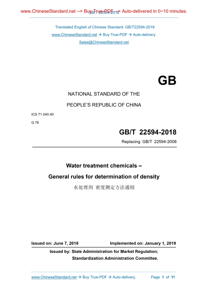 GB/T 22594-2018: Water treatment chemicals - General rules for determination of density Delivery: 9 seconds. True-PDF full-copy in English & invoice will be downloaded + auto-delivered via email. See step-by-step procedure Status: Valid GB/T 22594: Historical versions