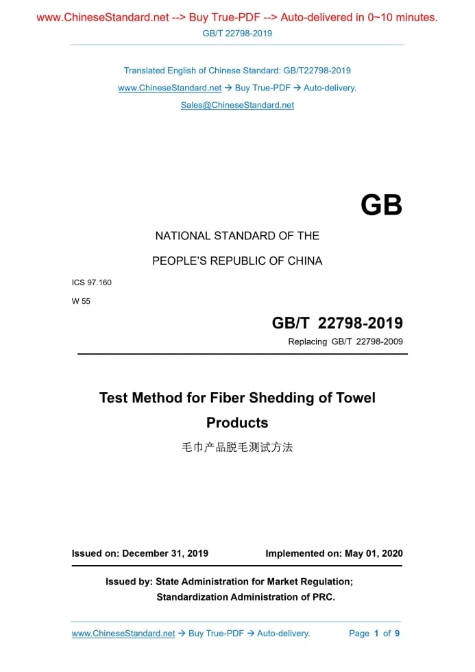GB/T 22798-2019: Test method for fiber shedding of towel products Delivery: 9 seconds. True-PDF full-copy in English & invoice will be downloaded + auto-delivered via email. See step-by-step procedure Status: Valid GB/T 22798: Historical versions