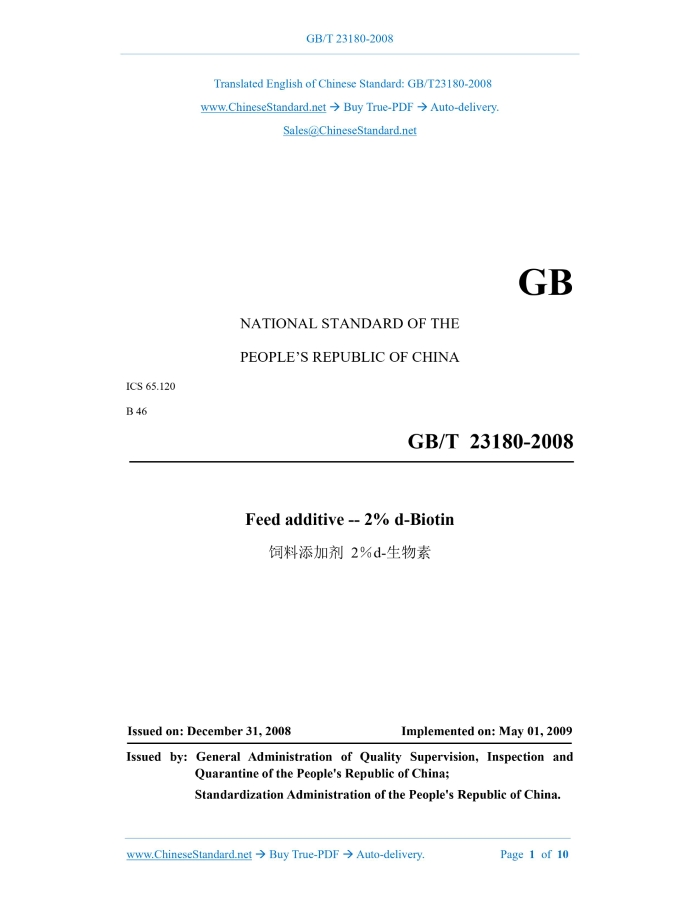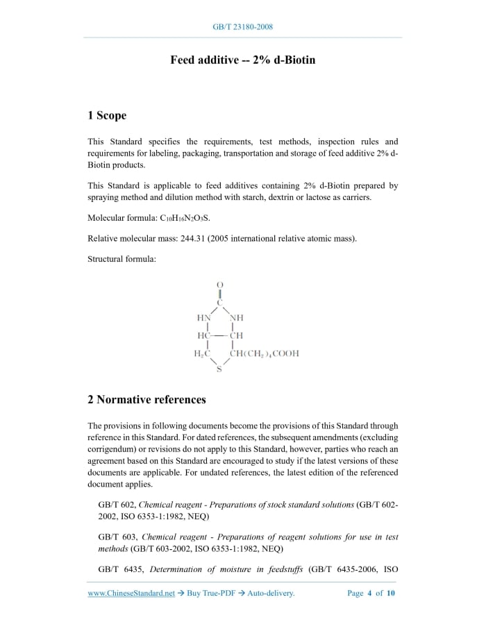GB/T 23180-2008: Feed Additive - 2% d-Biotin Delivery: 9 seconds. True-PDF full-copy in English & invoice will be downloaded + auto-delivered via email. See step-by-step procedure Status: Valid