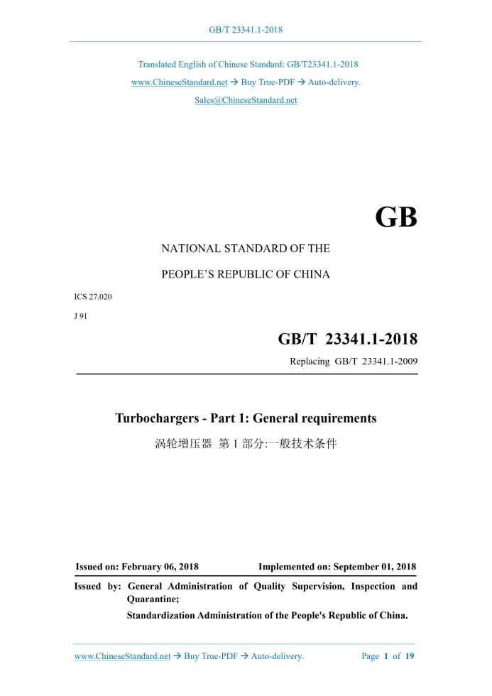 GB/T 23341.1-2018: Turbochargers - Part 1: General requirements Delivery: 9 seconds. True-PDF full-copy in English & invoice will be downloaded + auto-delivered via email. See step-by-step procedure Status: Valid GB/T 23341.1: Historical versions