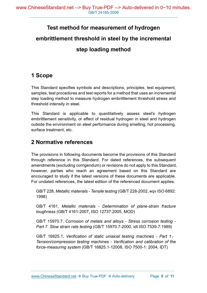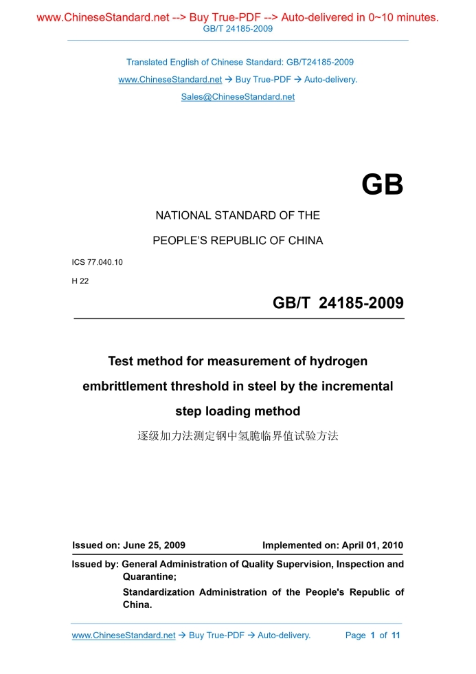 GB/T 24185-2009: Test method for measurement of hydrogen embrittlement threshold in steel by the incremental step loading method Delivery: 9 seconds. True-PDF full-copy in English & invoice will be downloaded + auto-delivered via email. See step-by-step procedure Status: Valid