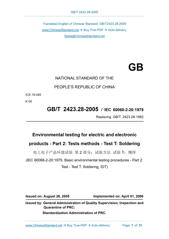 GB/T 2423.28-2005 PDF EnglishUS$220.00 · In stock · Download in 9 seconds