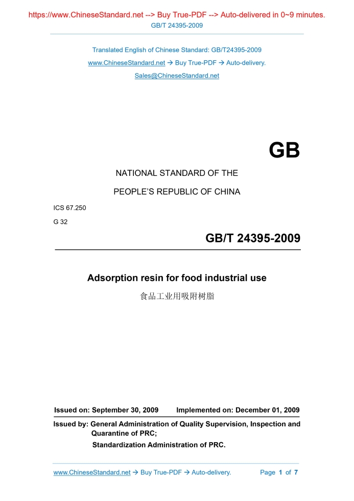 GB/T 24395-2009: Adsorption resin for food industrial use Delivery: 9 seconds. True-PDF full-copy in English & invoice will be downloaded + auto-delivered via email. See step-by-step procedure Status: Valid
