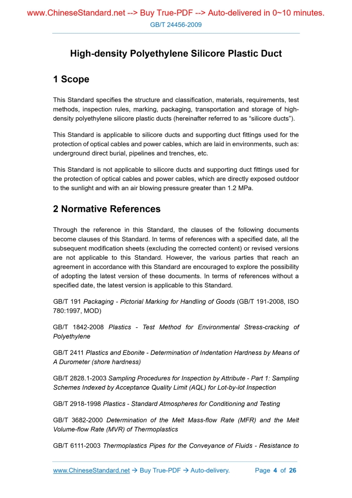 GB/T 24456-2009: High-density Polyethylene Silicore Plastic Duct Delivery: 9 seconds. True-PDF full-copy in English & invoice will be downloaded + auto-delivered via email. See step-by-step procedure Status: Valid