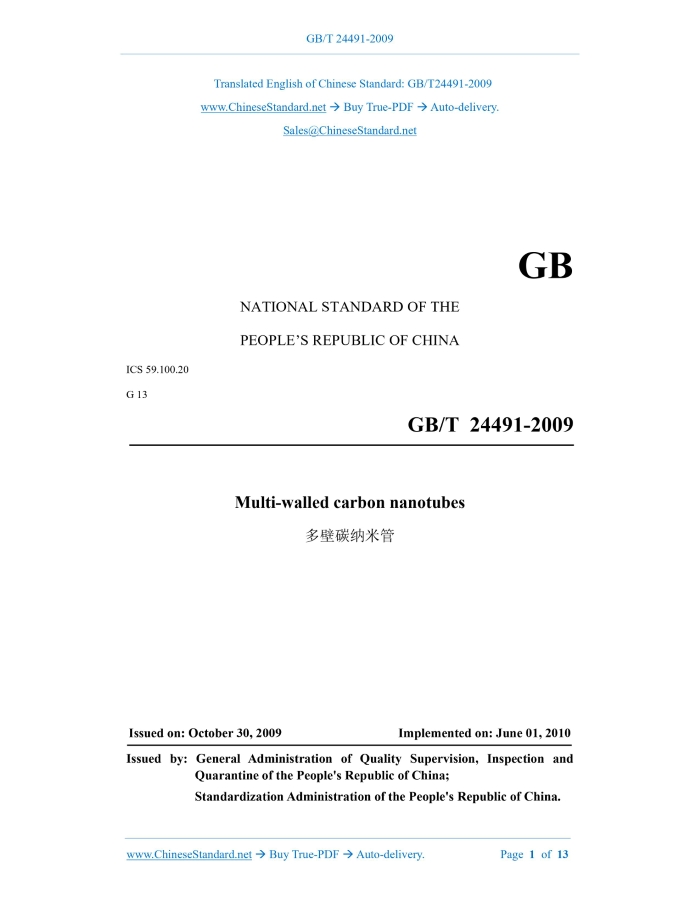 GB/T 24491-2009: Multi-walled carbon nanotubes Delivery: 9 seconds. True-PDF full-copy in English & invoice will be downloaded + auto-delivered via email. See step-by-step procedure Status: Valid
