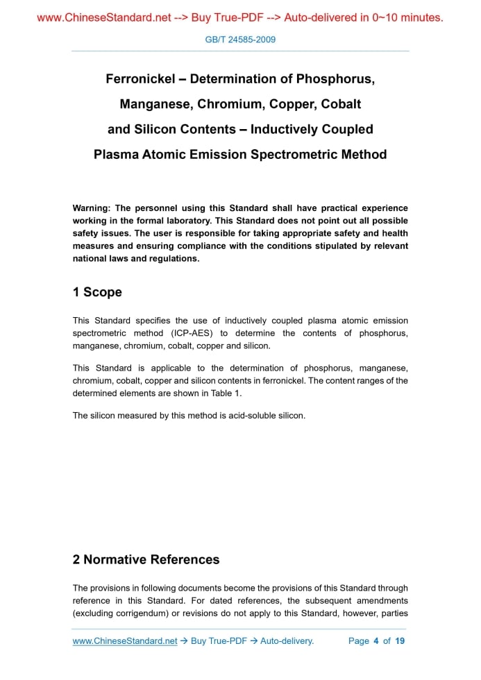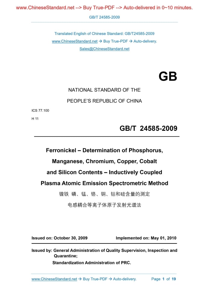 GB/T 24585-2009: Ferronickel - Determination of Phosphorus, Manganese, Chromium, Copper, Cobalt and Silicon Contents - Inductively Coupled Plasma Atomic Emission Spectrometric Method Delivery: 9 seconds. True-PDF full-copy in English & invoice will be downloaded + auto-delivered via email. See step-by-step procedure Status: Valid