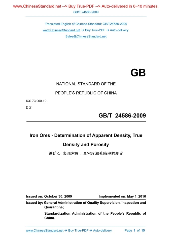 GB/T 24586-2009: Iron Ores - Determination of Apparent Density, True Density and Porosity Delivery: 9 seconds. True-PDF full-copy in English & invoice will be downloaded + auto-delivered via email. See step-by-step procedure Status: Valid