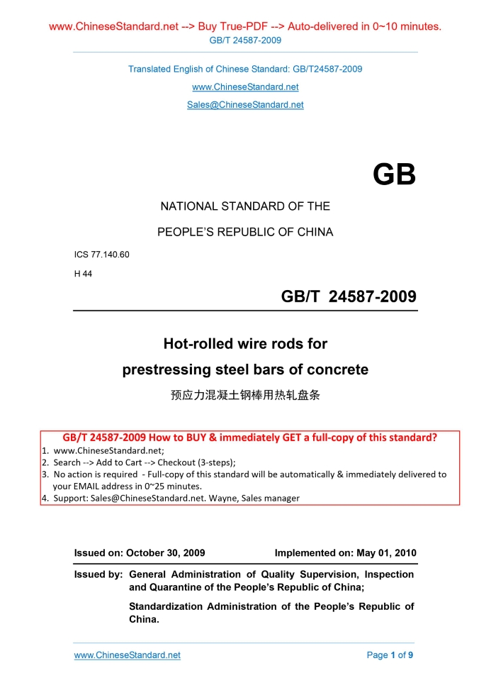 GB/T 24587-2009: Hot-rolled wire rods for prestressing steel bars of concrete Delivery: 9 seconds. True-PDF full-copy in English & invoice will be downloaded + auto-delivered via email. See step-by-step procedure Status: Valid GB/T 24587: Historical versions