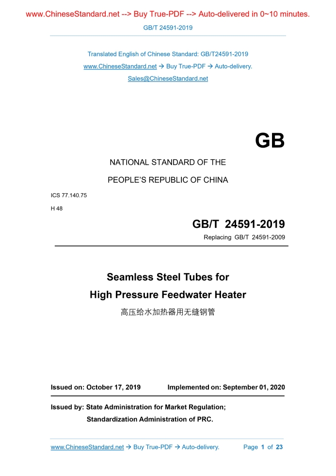 GB/T 24591-2019: Seamless Steel Tubes for High Pressure Feedwater Heater Delivery: 9 seconds. True-PDF full-copy in English & invoice will be downloaded + auto-delivered via email. See step-by-step procedure Status: Valid GB/T 24591: Historical versions