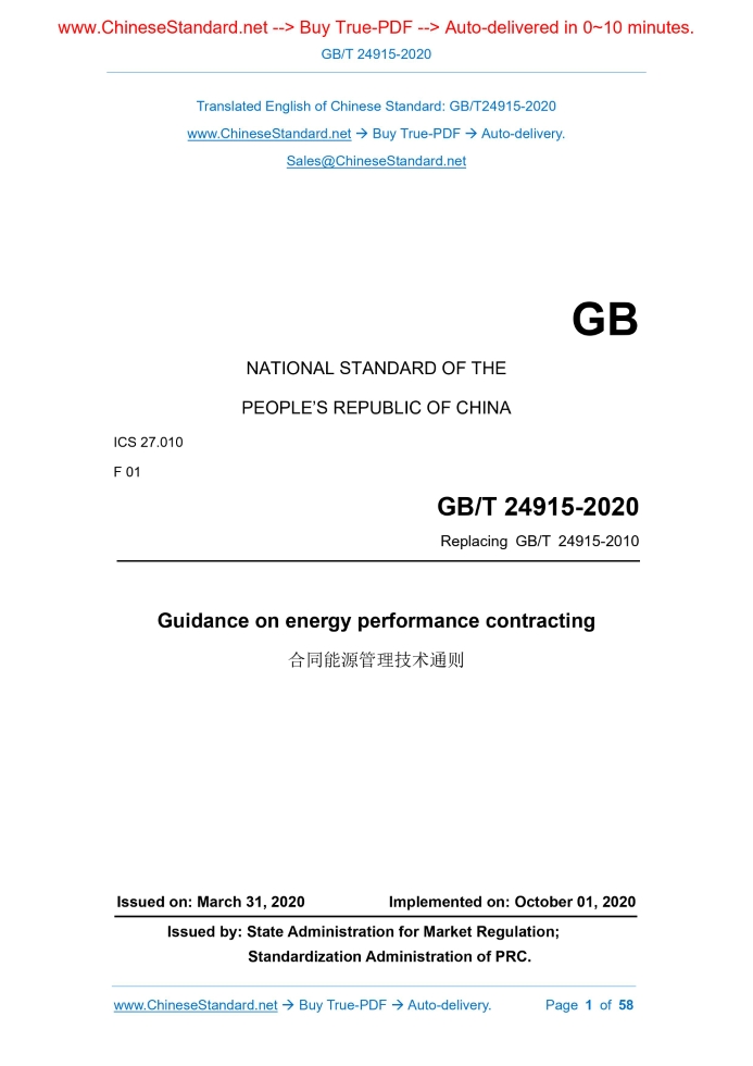 GB/T 24915-2020: Guidance on energy performance contracting Delivery: 9 seconds. True-PDF full-copy in English & invoice will be downloaded + auto-delivered via email. See step-by-step procedure Status: Valid GB/T 24915: Historical versions