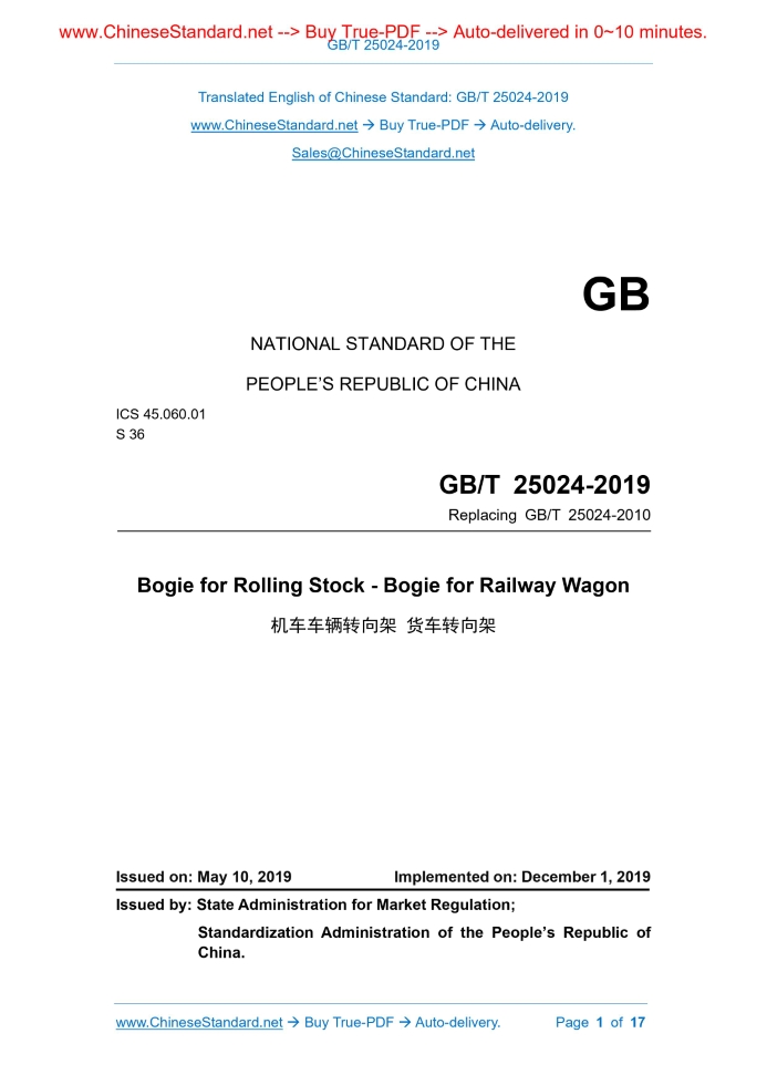 GB/T 25024-2019: Bogie for Rolling Stock - Bogie for Railway Wagon Delivery: 9 seconds. True-PDF full-copy in English & invoice will be downloaded + auto-delivered via email. See step-by-step procedure Status: Valid GB/T 25024: Historical versions