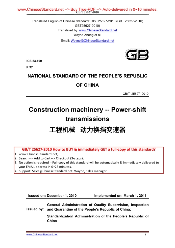 GB/T 25627-2010: Construction machinery -- Power-shift transmissions Delivery: 9 seconds. True-PDF full-copy in English & invoice will be downloaded + auto-delivered via email. See step-by-step procedure Status: Valid