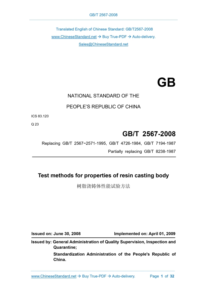 GB/T 2567-2008: Test methods for properties of resin casting body Delivery: 9 seconds. True-PDF full-copy in English & invoice will be downloaded + auto-delivered via email. See step-by-step procedure Status: Obsolete GB/T 2567: Historical versions