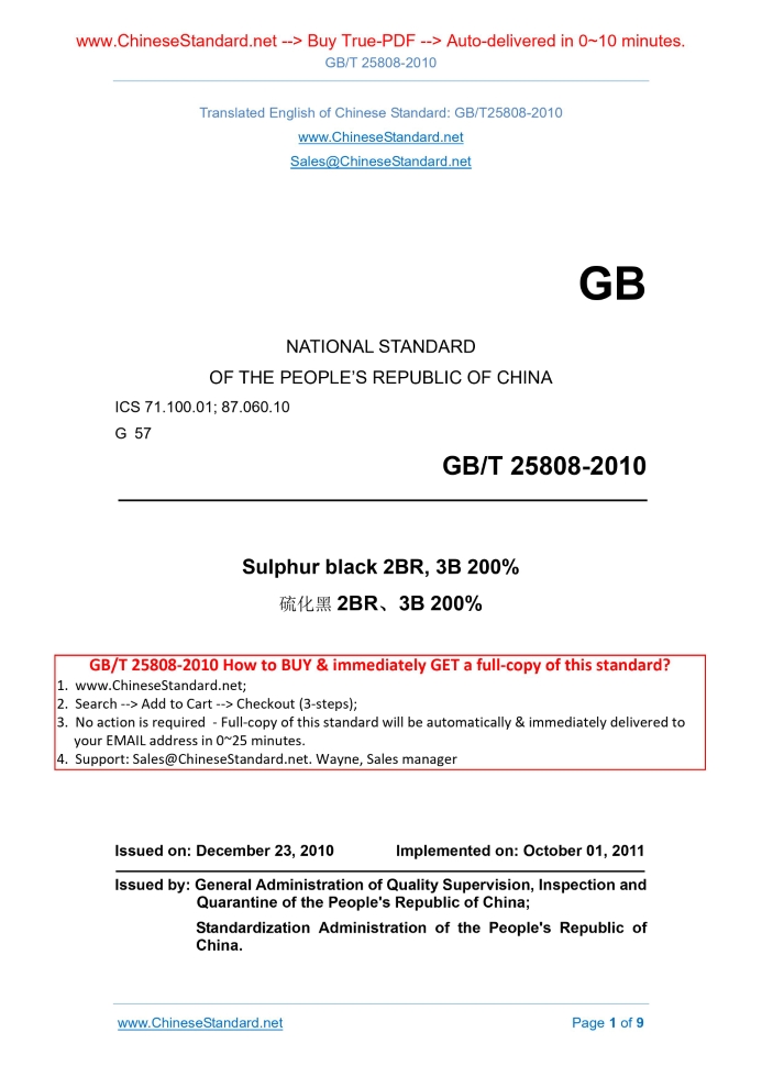 GB/T 25808-2010: Sulphur black 2BR, 3B 200-percent Delivery: 9 seconds. True-PDF full-copy in English & invoice will be downloaded + auto-delivered via email. See step-by-step procedure Status: Obsolete GB/T 25808: Historical versions