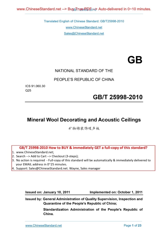 GB/T 25998-2010: Mineral wool decorating and acoustic ceilings Delivery: 9 seconds. True-PDF full-copy in English & invoice will be downloaded + auto-delivered via email. See step-by-step procedure Status: Obsolete GB/T 25998: Historical versions