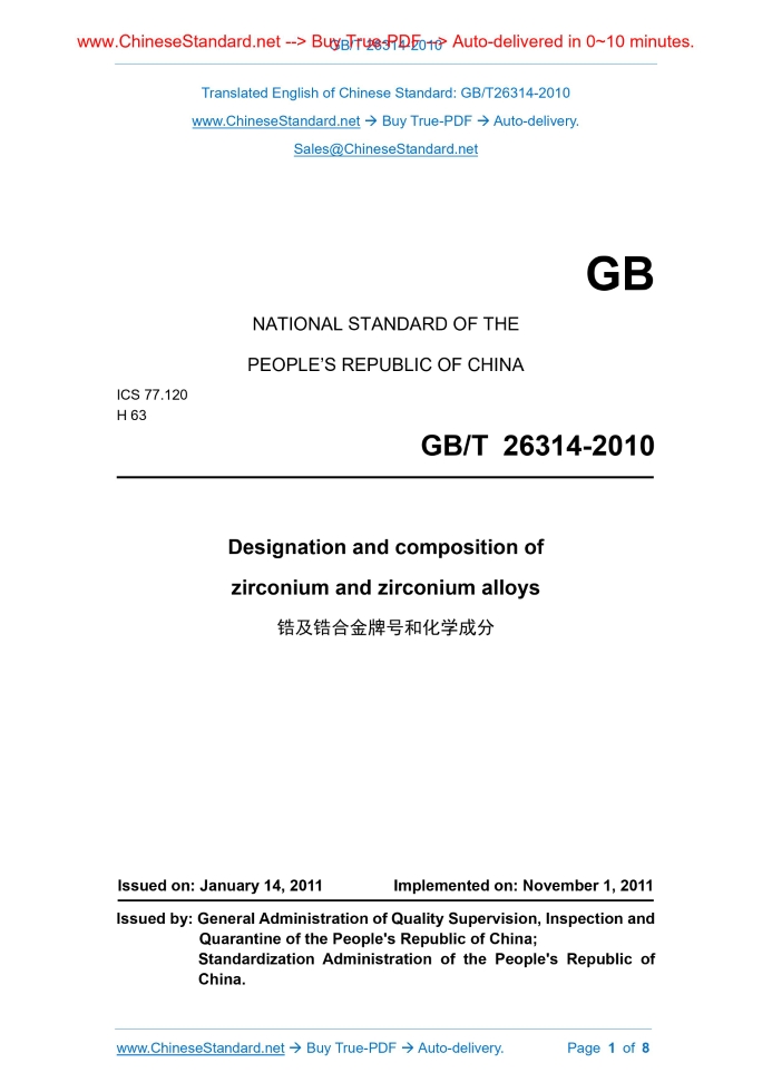 GB/T 26314-2010: Designation and composition of zirconium and zirconium alloys Delivery: 9 seconds. True-PDF full-copy in English & invoice will be downloaded + auto-delivered via email. See step-by-step procedure Status: Valid