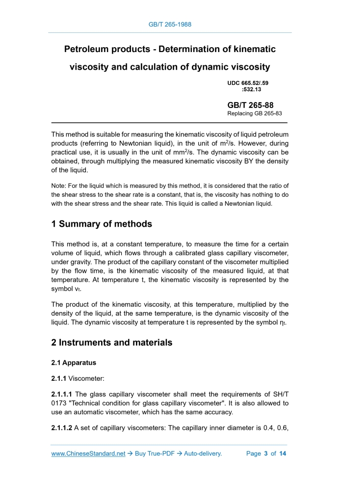 ---This is an excerpt. Full copy of true-PDF in English version (including equations, symbols, images, flow-chart, tables, and figures etc.), auto-downloaded/delivered in 9 seconds, can be purchased online: https://www.ChineseStandard.net/PDF.aspx/GBT265-1988