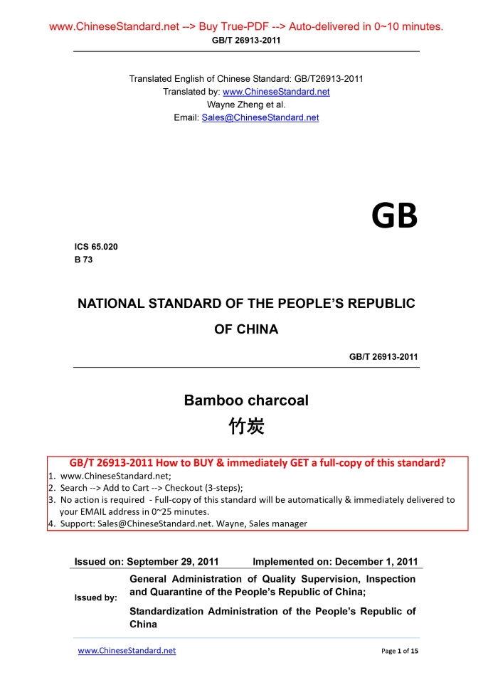GB/T 26913-2011: Bamboo charcoal Delivery: 9 seconds. True-PDF full-copy in English & invoice will be downloaded + auto-delivered via email. See step-by-step procedure Status: Valid GB/T 26913: Historical versions