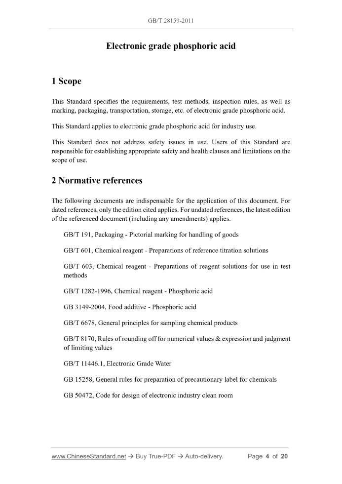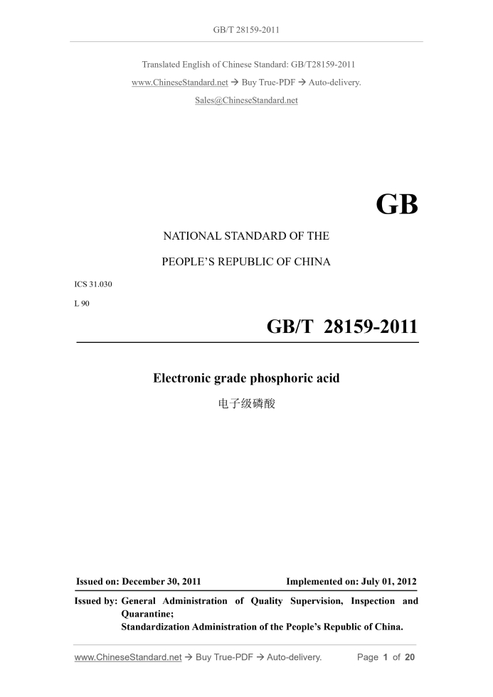 GB/T 28159-2011: Electronic grade phosphoric acid Delivery: 9 seconds. True-PDF full-copy in English & invoice will be downloaded + auto-delivered via email. See step-by-step procedure Status: Valid GB/T 28159: Historical versions