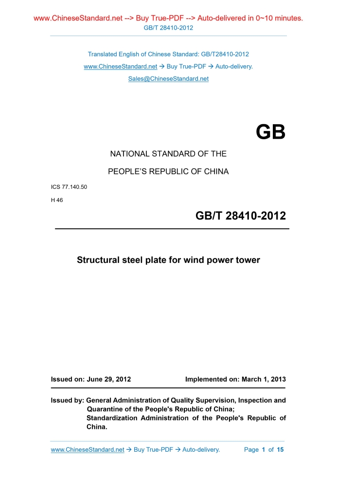 GB/T 28410-2012: Structural steel plate for wind power tower Delivery: 9 seconds. True-PDF full-copy in English & invoice will be downloaded + auto-delivered via email. See step-by-step procedure Status: Valid GB/T 28410: Historical versions
