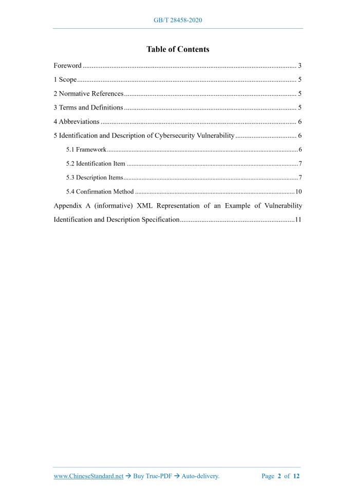 Foreword ... 3 1 Scope ... 5 2 Normative References ... 5 3 Terms and Definitions ... 5 4 Abbreviations ... 6 5 Identification and Description of Cybersecurity Vulnerability ... 6 5.1 Framework ... 6 5.2 Identification Item ... 7 5.3 Description Items ... 7 5.4 Confirmation Method ... 10 Appendix A (informative) XML Representation of an Example of Vulnerability Identification and Description Specification ... 11 Information Security Technology - Cybersecurity Vulnerability Identification and Description Specification