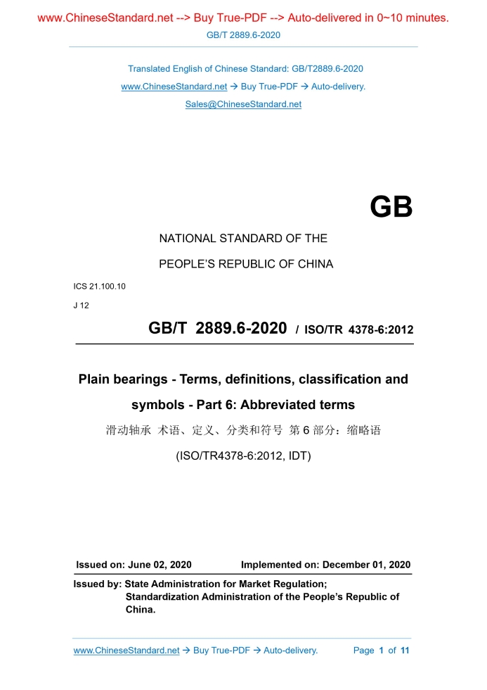 GB/T 2889.6-2020: Plain bearings - Terms, definitions, classification and symbols - Part 6: Abbreviated terms Delivery: 9 seconds. True-PDF full-copy in English & invoice will be downloaded + auto-delivered via email. See step-by-step procedure Status: Valid