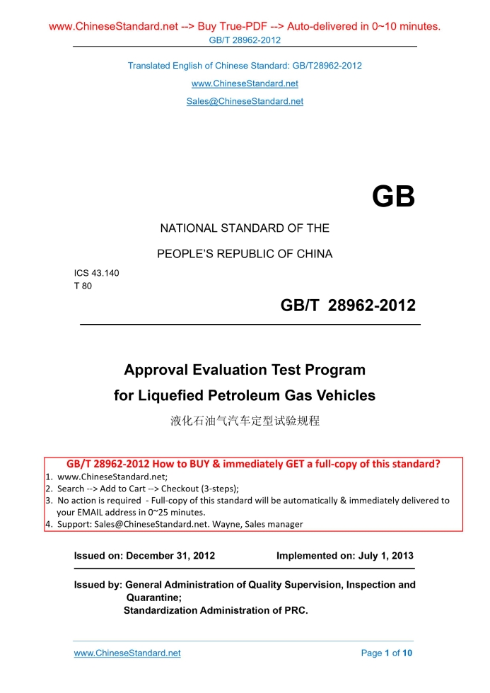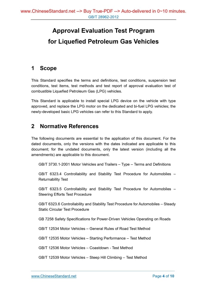 GB/T 28962-2012: Approval Evaluation Test Program for Liquefied Petroleum Gas Vehicles Delivery: 9 seconds. True-PDF full-copy in English & invoice will be downloaded + auto-delivered via email. See step-by-step procedure Status: Valid