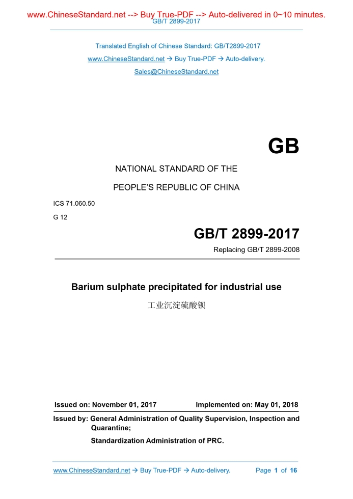 GB/T 2899-2017: Barium sulphate precipitated for industrial use Delivery: 9 seconds. True-PDF full-copy in English & invoice will be downloaded + auto-delivered via email. See step-by-step procedure Status: Valid GB/T 2899: Historical versions