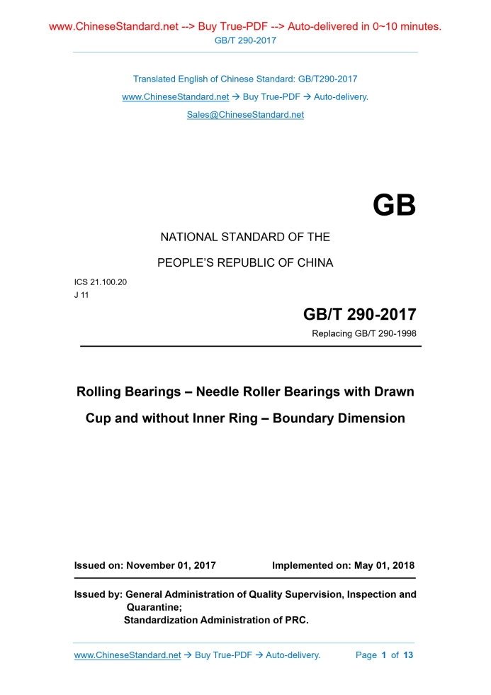 GB/T 290-2017: Rolling Bearings - Needle Roller Bearings with Drawn Cup and without Inner Ring - Boundary Dimension Delivery: 9 seconds. True-PDF full-copy in English & invoice will be downloaded + auto-delivered via email. See step-by-step procedure Status: Valid GB/T 290: Historical versions