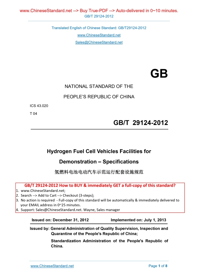 GB/T 29124-2012: Hydrogen fuel cell vehicles facilities for demonstration specifications Delivery: 9 seconds. True-PDF full-copy in English & invoice will be downloaded + auto-delivered via email. See step-by-step procedure Status: Valid GB/T 29124: Historical versions