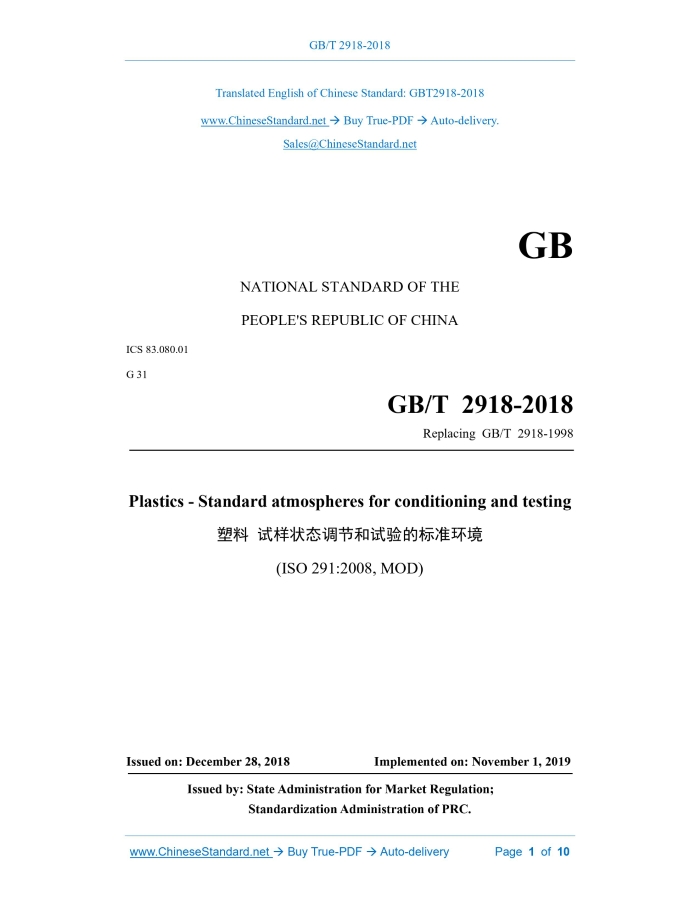 GB/T 2918-2018: Plastics -- Standard atmospheres for conditioning and testing Delivery: 9 seconds. True-PDF full-copy in English & invoice will be downloaded + auto-delivered via email. See step-by-step procedure Status: Valid GB/T 2918: Historical versions