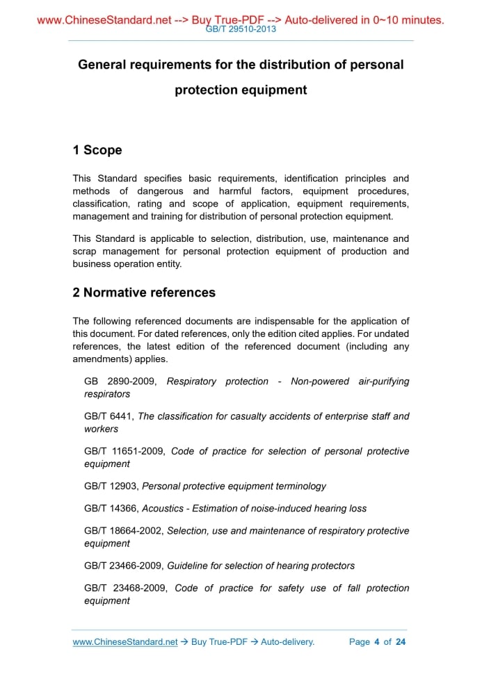 GB/T 29510-2013: General requirements for the distribution of personal protection equipment Delivery: 9 seconds. True-PDF full-copy in English & invoice will be downloaded + auto-delivered via email. See step-by-step procedure Status: Obsolete