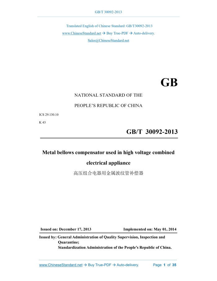 GB/T 30092-2013: Metal bellows compensator used in high voltage combined electrical appliance Delivery: 9 seconds. True-PDF full-copy in English & invoice will be downloaded + auto-delivered via email. See step-by-step procedure Status: Valid