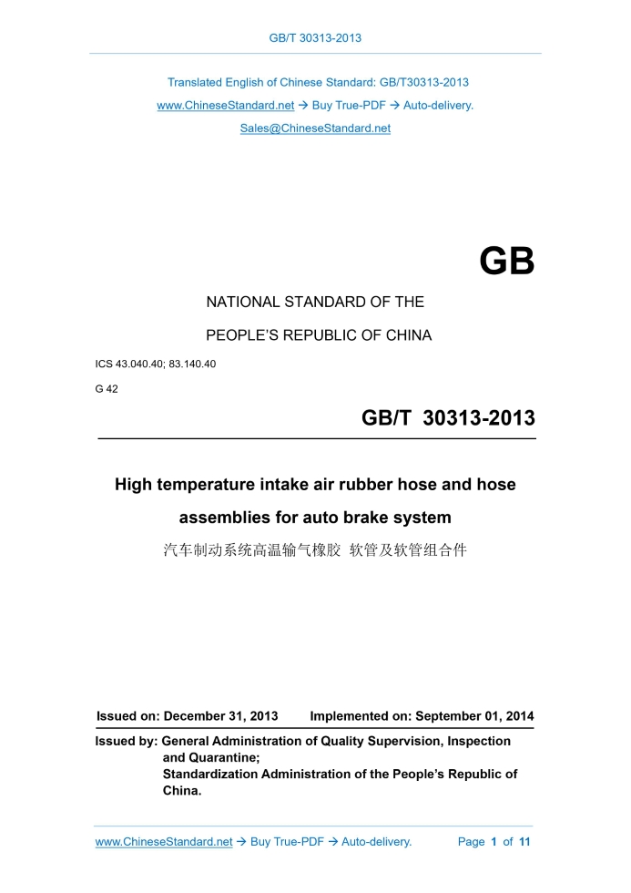 GB/T 30313-2013: High temperature intake air rubber hose and hose assemblies for auto brake system Delivery: 9 seconds. True-PDF full-copy in English & invoice will be downloaded + auto-delivered via email. See step-by-step procedure Status: Valid