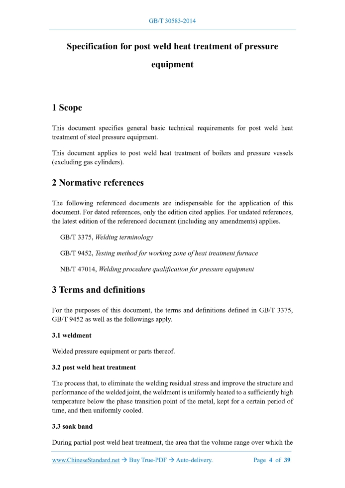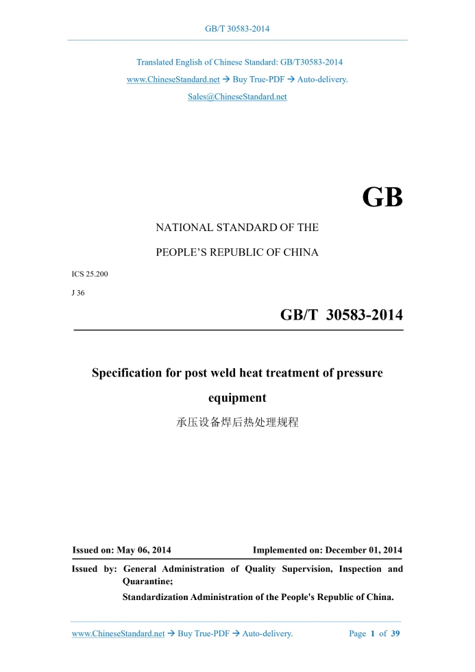 GB/T 30583-2014: Specification for post weld heat treatment of pressure equipment Delivery: 9 seconds. True-PDF full-copy in English & invoice will be downloaded + auto-delivered via email. See step-by-step procedure Status: Valid