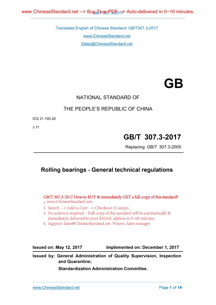 GB/T 307.3-2017: Rolling bearings - General technical regulations Delivery: 9 seconds. True-PDF full-copy in English & invoice will be downloaded + auto-delivered via email. See step-by-step procedure Status: Valid GB/T 307.3: Historical versions