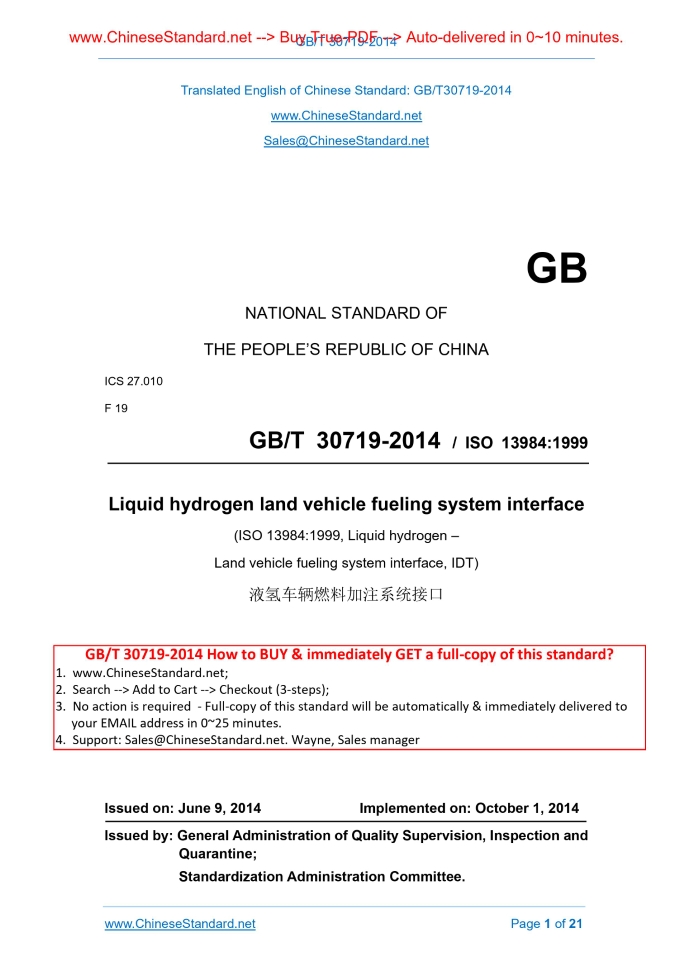 GB/T 30719-2014: Liquid hydrogen land vehicle fueling system interface Delivery: 9 seconds. True-PDF full-copy in English & invoice will be downloaded + auto-delivered via email. See step-by-step procedure Status: Valid