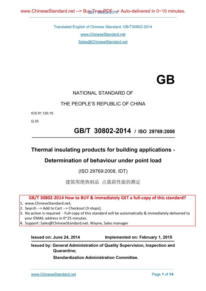 GB/T 30802-2014: Thermal insulating products for building applications -- Determination of behaviour under point load Delivery: 9 seconds. True-PDF full-copy in English & invoice will be downloaded + auto-delivered via email. See step-by-step procedure Status: Valid