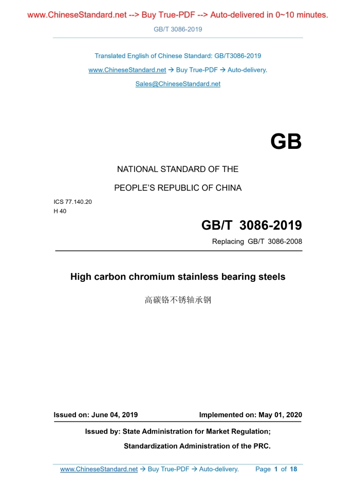 GB/T 3086-2019: High carbon chromium stainless bearing steels Delivery: 9 seconds. True-PDF full-copy in English & invoice will be downloaded + auto-delivered via email. See step-by-step procedure Status: Valid GB/T 3086: Historical versions