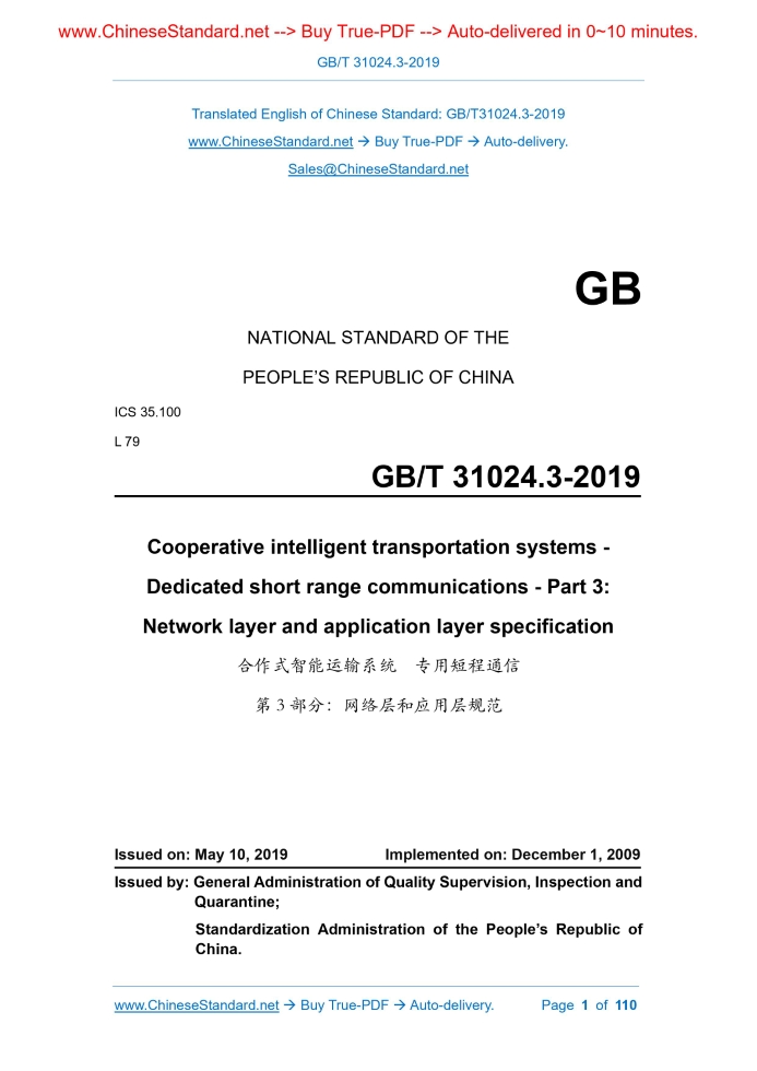 GB/T 31024.3-2019: Cooperative intelligent transportation systems -- Dedicated short range communications -- Part 3: Network layer and application layer specification Delivery: 9 seconds. True-PDF full-copy in English & invoice will be downloaded + auto-delivered via email. See step-by-step procedure Status: Valid