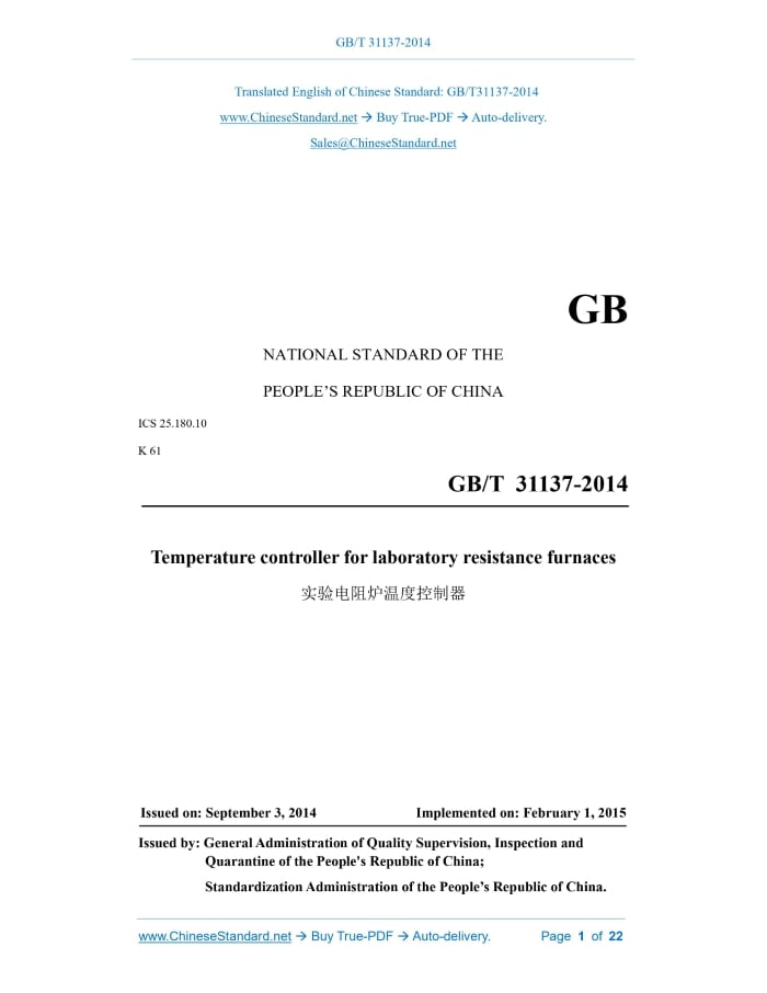 GB/T 31137-2014: Temperature controller for laboratory resistance furnaces Delivery: 9 seconds. True-PDF full-copy in English & invoice will be downloaded + auto-delivered via email. See step-by-step procedure Status: Valid