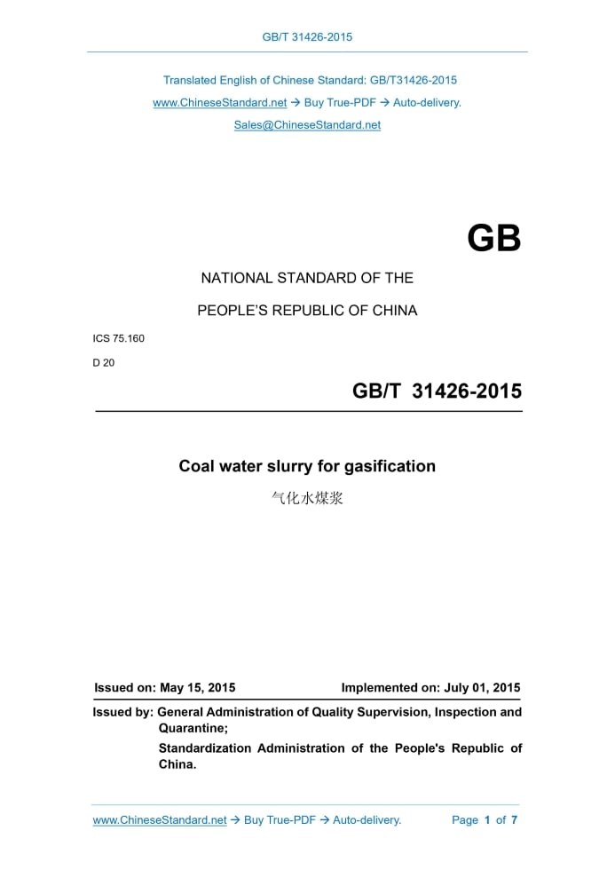 GB/T 31426-2015: Coal water slurry for gasification Delivery: 9 seconds. True-PDF full-copy in English & invoice will be downloaded + auto-delivered via email. See step-by-step procedure Status: Valid