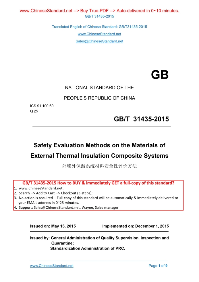 GB/T 31435-2015: Safety evaluation methods on the materials of external thermal insulation composite systems Delivery: 9 seconds. True-PDF full-copy in English & invoice will be downloaded + auto-delivered via email. See step-by-step procedure Status: Valid